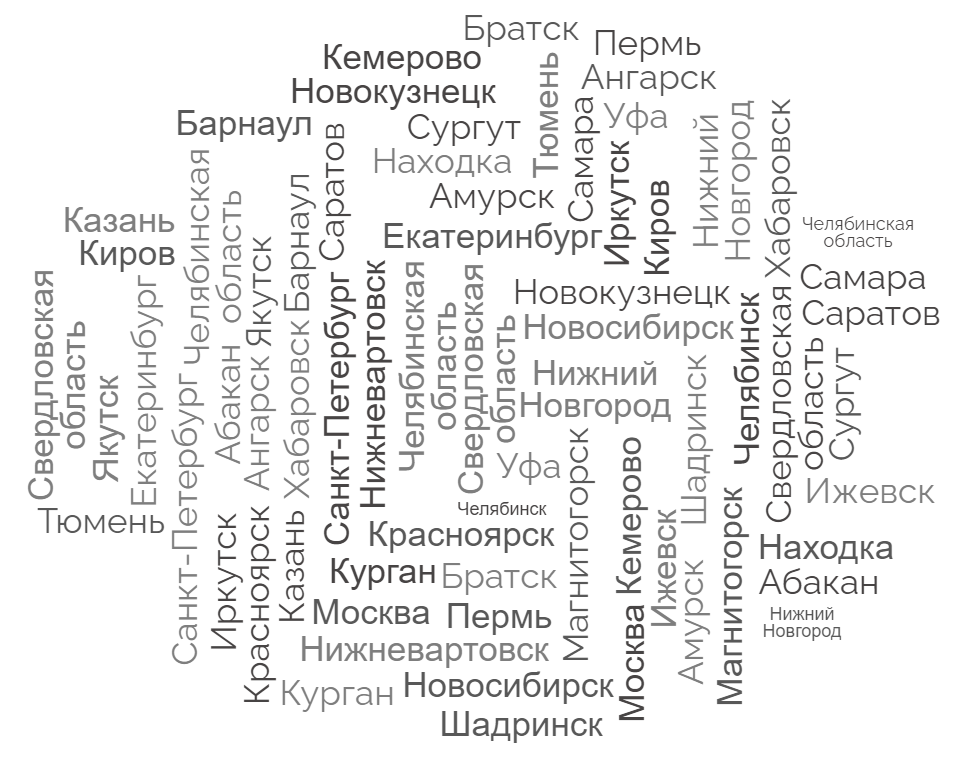 - Новосибирск, Иркутск, Братск, Ангарск,